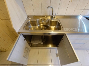 LOFT風搭配上木紋板面襯托出廚房的實用性~手感的實木把手,賦予衣櫃更高的質感!