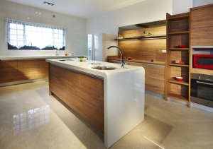 自然簡約搭配木紋裡的線條,呈現空間廚房美學