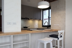 輕工業風的彈性變化,配色上也較不這麼的「重」跟「冷」,搭配吧檯實木的溫暖也多了幾分清新感,非常適合