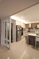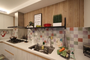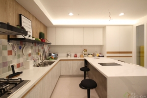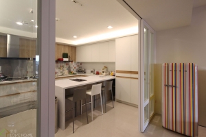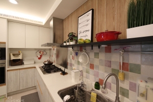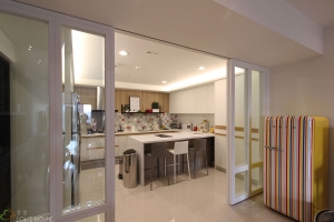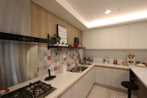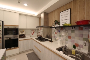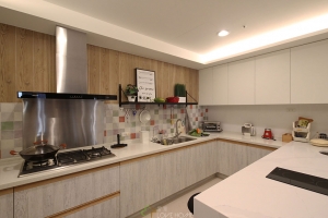 簡約混搭把實木把手元素置入櫥櫃內,運用把手線條勾勒出美學的韻味