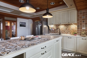 藝術感十足的花磚,成為點綴空間的好夥伴,將這套鄉村風廚房營造出一種遠離喧囂的簡單清新感,展現田園鄉村的放鬆好去處!