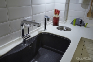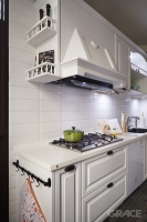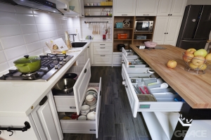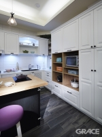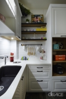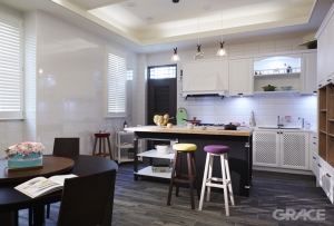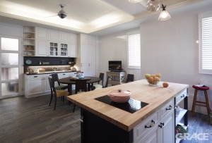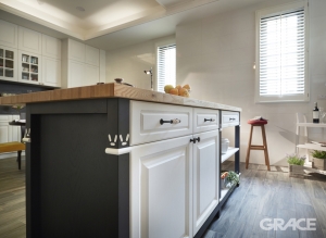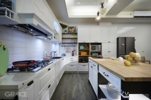 廚房打造夢想中黑白美式鄉村風廚房,簡化了一些鄉村風的粗糙原始感與花紋圖騰,多了一些現代風的簡約時尚感,適合喜歡文明也熱愛自然的都市人,所以又稱作「都會鄉村風」。